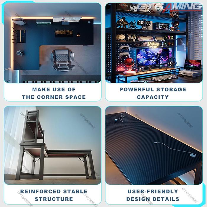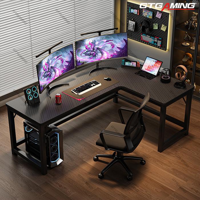GTGAMING MEJA GAMING KARBON SERAT 120CM/160CM DESAIN L KIRI/KANAN FLEKSIBEL COCOK UNTUK HOME OFFICE & RUANG KERJA MINIMALIS FURNITURE 2-IN-1 HEMAT RUANG STABIL & KOKOH - KIRI/KANAN 120X100CM