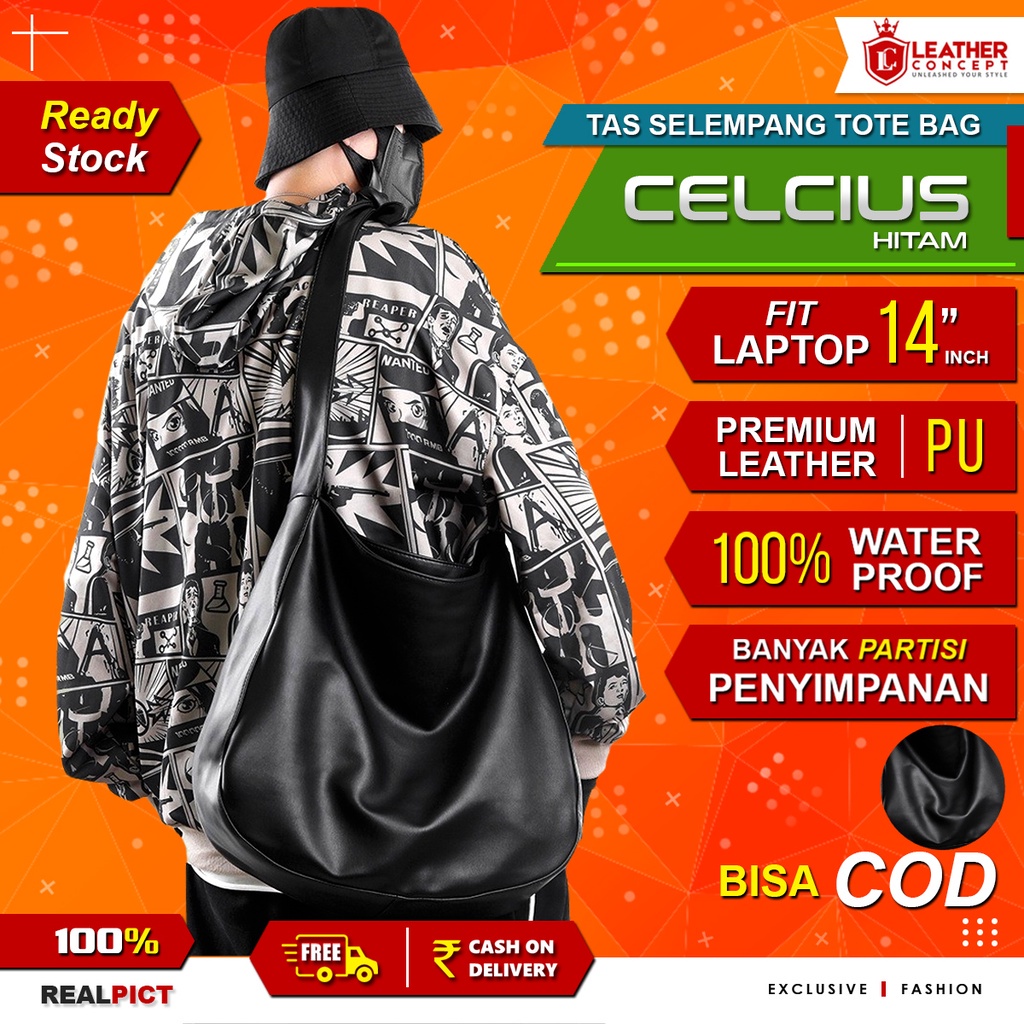 LEATHER CONCEPT Tas Selempang Kulit Pria Tas Kulit Pria Tote Bag Kulit CELCIUS Hitam