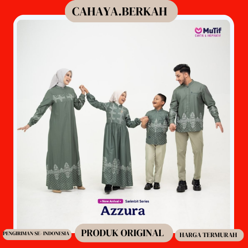 Baju Sarimbit Couple Terbaru LEBARAN 2026 MUTIF SARIMBIT AZZURA AZZAM EVERGREEN Koko Tangan Panjang Gamis Dewasa Anak
