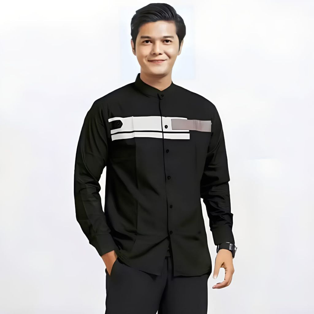 Baju Koko Pria Lengan Panjang Motif Yordan Azahir Kombinasih Warna Kualitas Premium