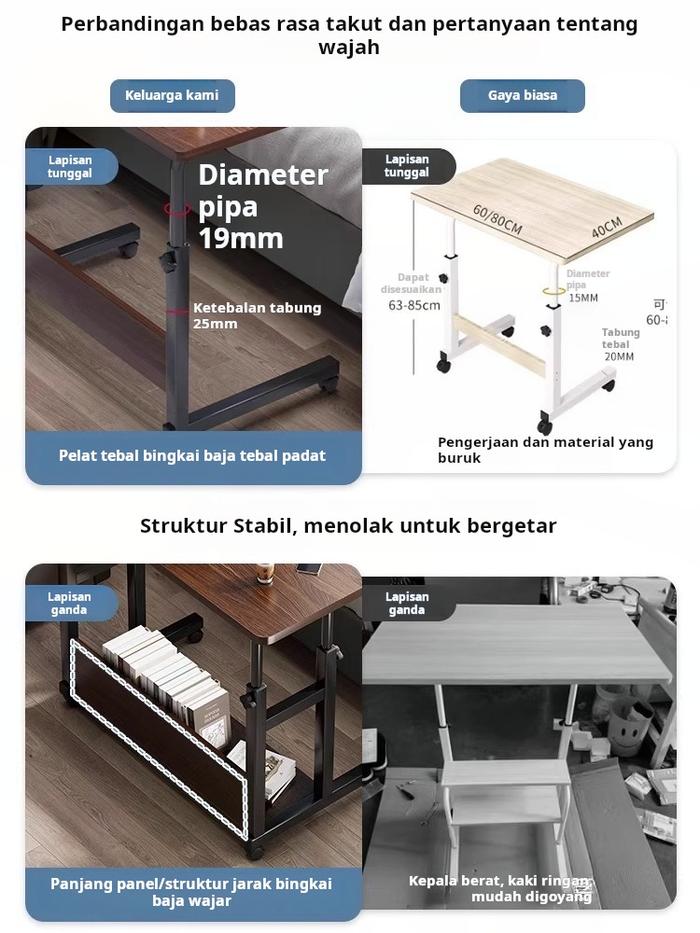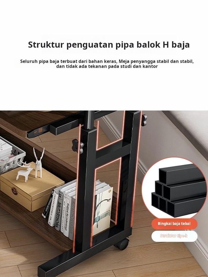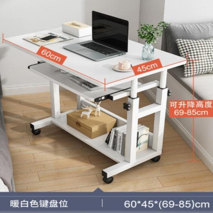 FUFU MEJA RANJANG H-SHAPE MEJA LAPTOP ADJUSTABLE MEJA BELAJAR MEJA KERJA DENGAN RODA MEJA SAMPING TEMPAT TIDUR 80×40CM STABIL KOKOH - 【H】60×40×60-85CM PUTIH DENGAN LACI KEYBOARD