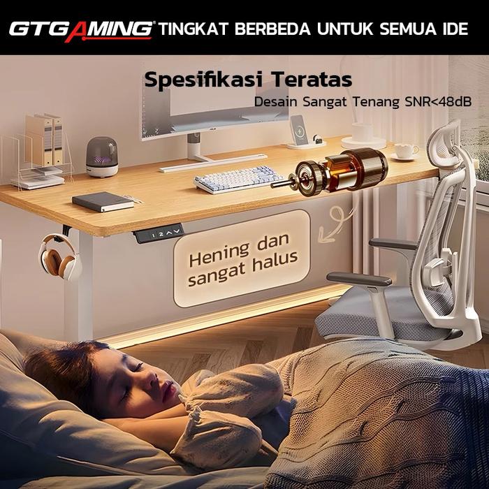 GTGAMING MEJA KERJA ELEKTRIK 160CM MEJA BELAJAR MEJA KOMPUTER MEJA KANTOR GAMING ADJUSTABLE STANDING DESK MINIMALIS FURNITURE - WARNA KAYU, 10060CM