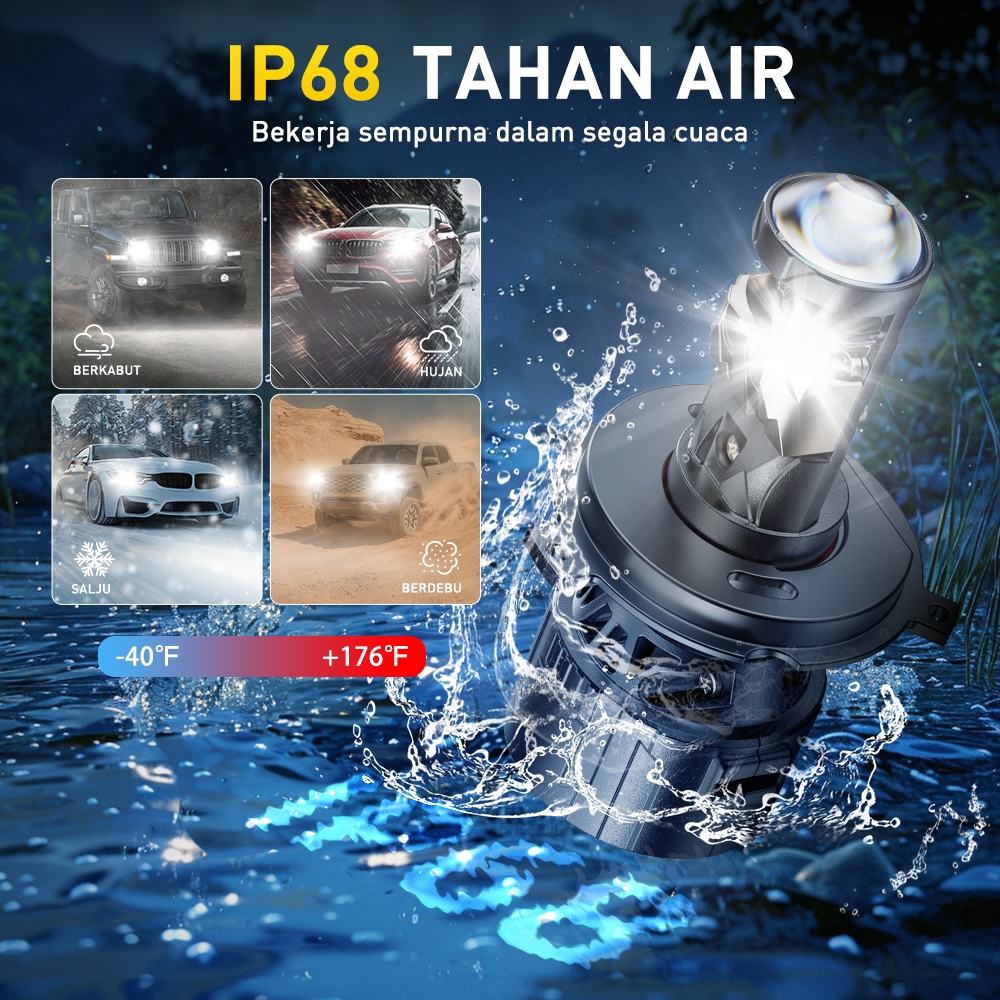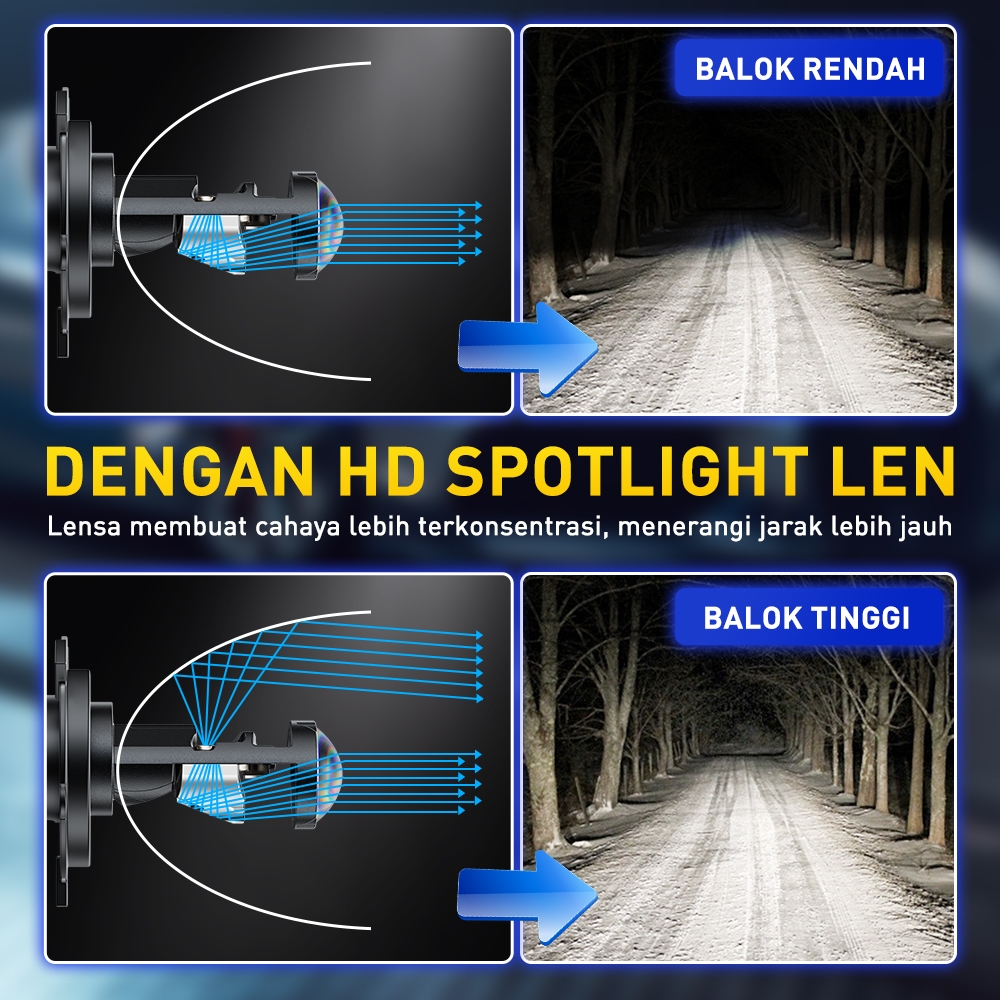 H4 9003 HB2 Lampu Utama LED Projector SUPER TERANG 30000LM Kipas Angin 72W 6500K Putih Headlamp Mobil