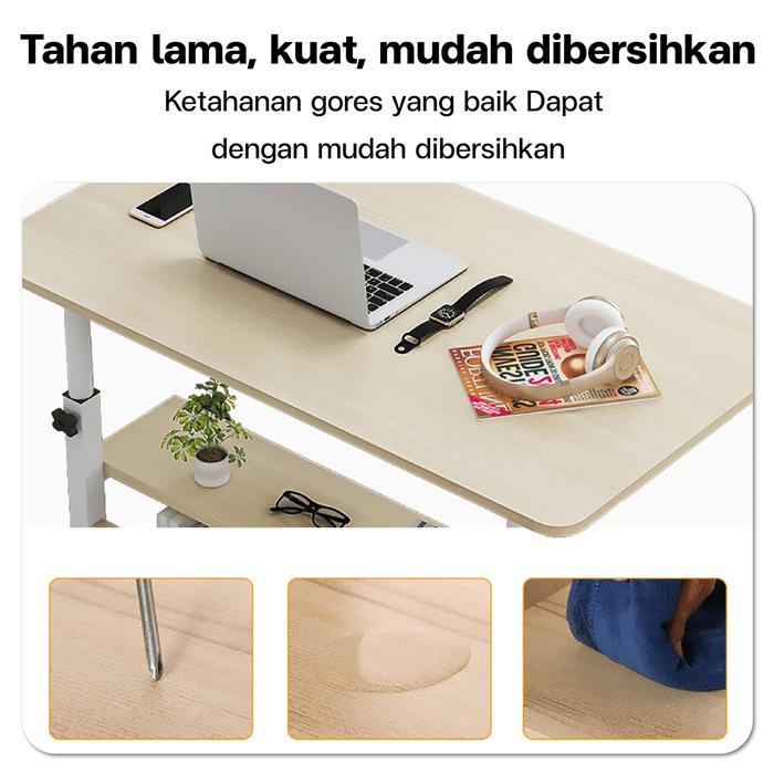 BGSPORT MEJA PORTABLE DENGAN RODA MEJA LAPTOP MEJA KERJA MEJA BELAJAR PORTABLE 1815 KAYU FURNITURE LIPAT KECIL TERJEPIT BANQUET - WHITE, PROTECTION PACK