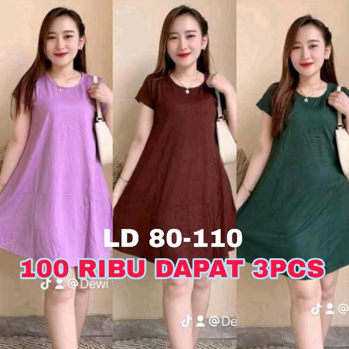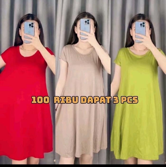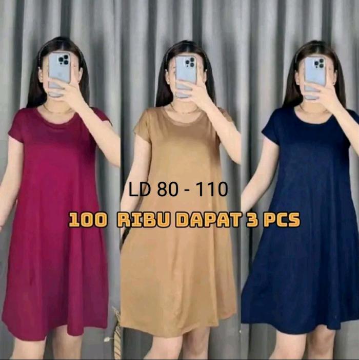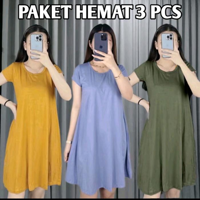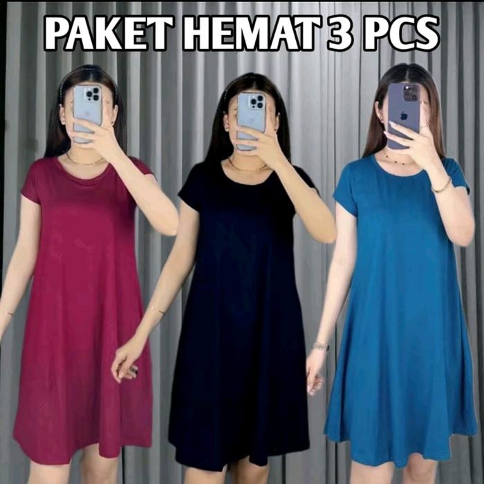 Paket 3 Pcs Dress Mola Dress Wanita Mola 975 Swing Dress Polos Midi Kerah U - Rayon Hitam - Gaun, Panjang, Formal, Simpl