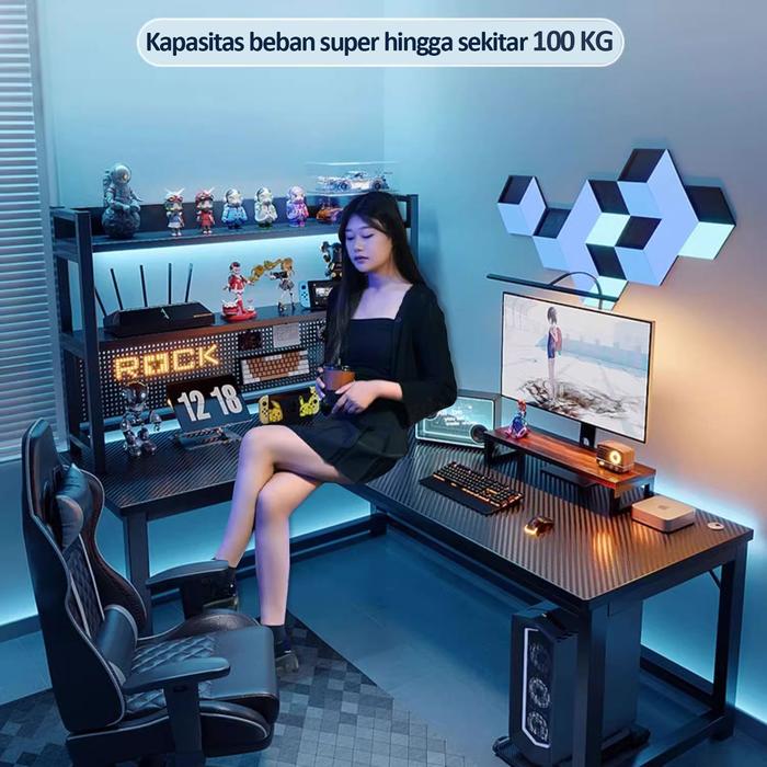 HANRIVER & KUCADI MEJA GAMING KARBON SERAT MEJA GAMING MEJA KOMPUTER MEJA KOMPUTER MINIMALIS MEJA BELAJAR MEJA LAPTOP - SERAT KARBON + BINGKAI HITAM KIRI 120X100CM