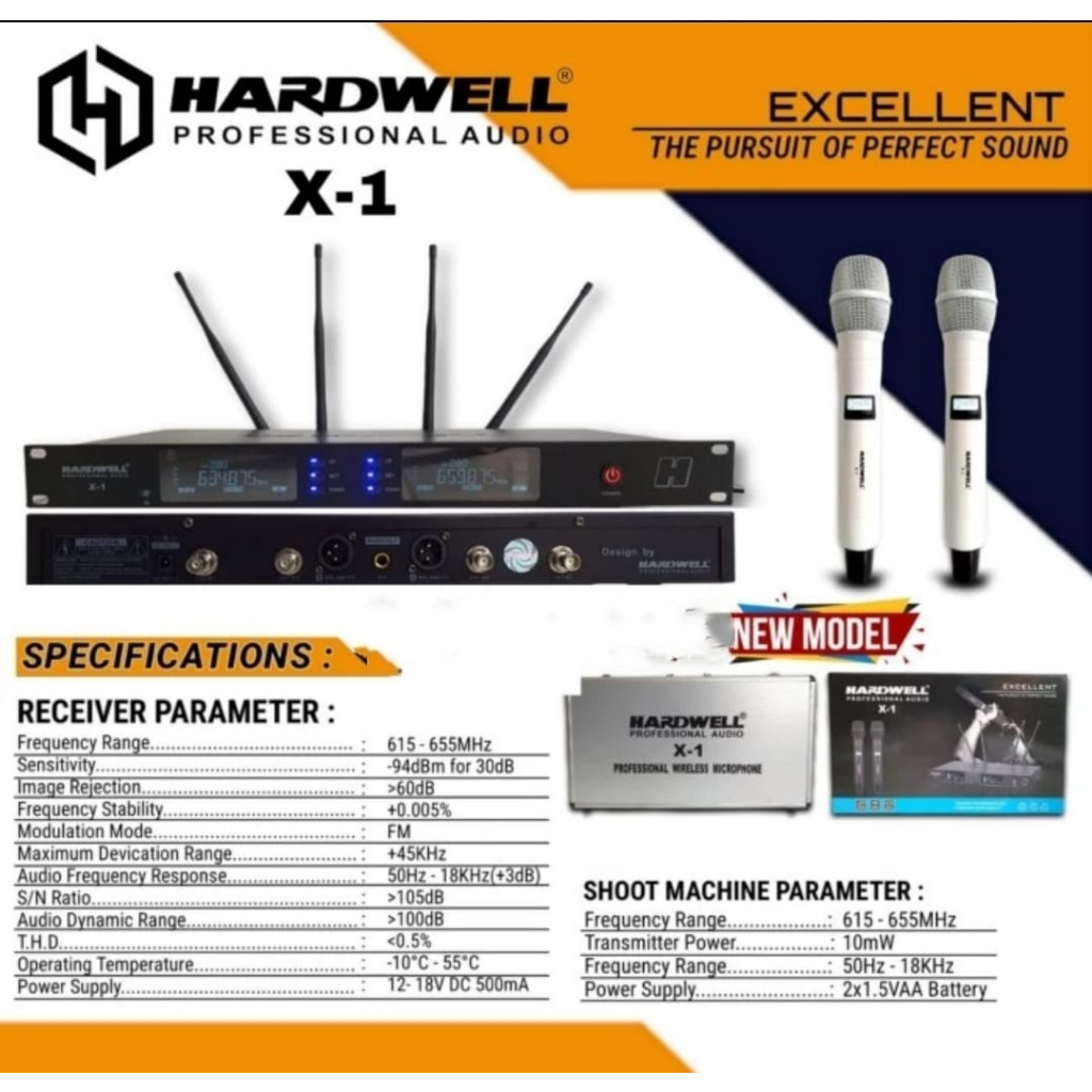 Mic Wireless Hardwell X1 / X 1 ORI Double Mic Handheld Best Seller