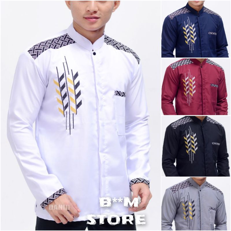 TERBARU koko lengan panjang kombinasi bordir material cotton adem fashion muslim pria