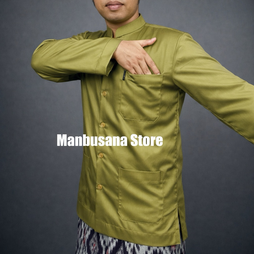 GROSIR Baju Koko Almahi Saku Depan Bawah Kerah Sanghai Muslim Pria Dewasa