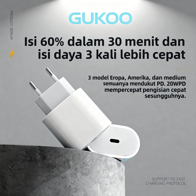 [Star] GUKOO CHARGER PD 35W Fast Charging Adaptor EU Port Apple - Isi Daya Super Cepat untuk iPad & MacBook