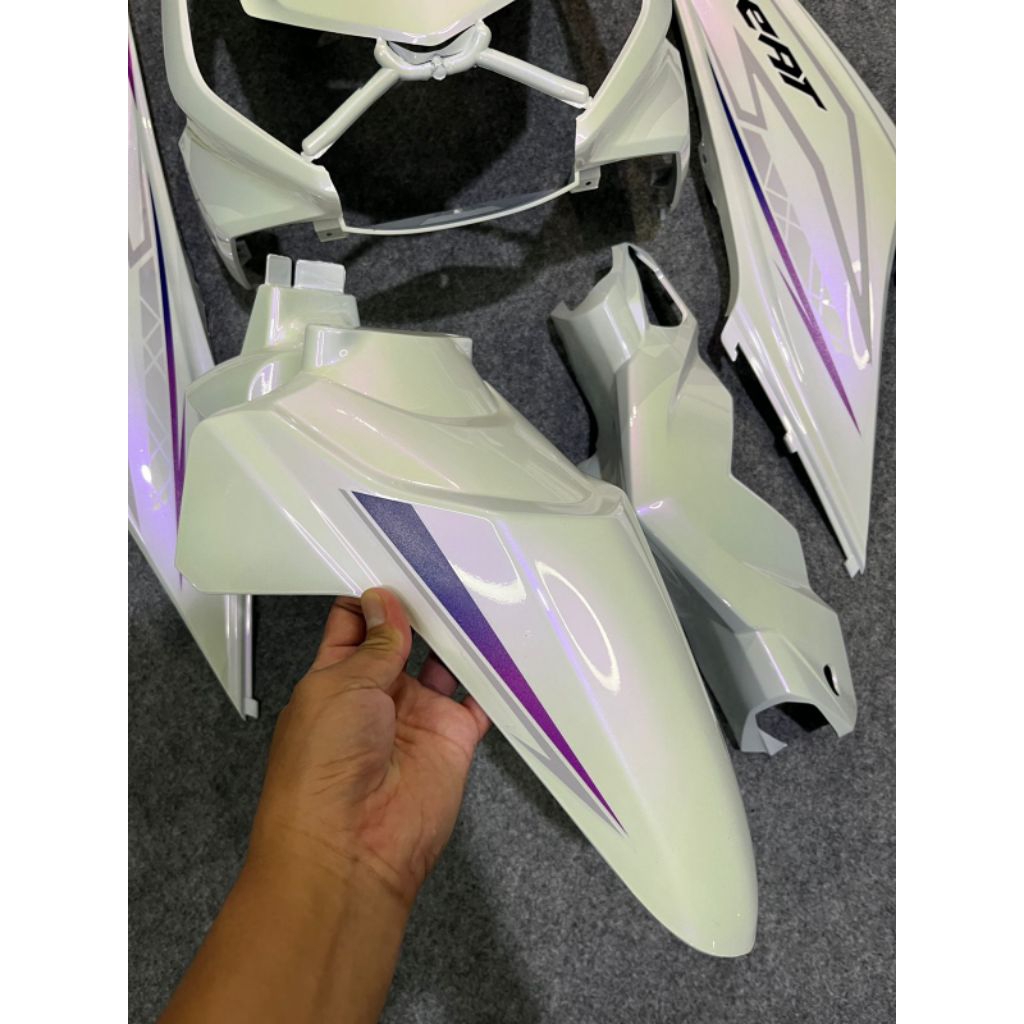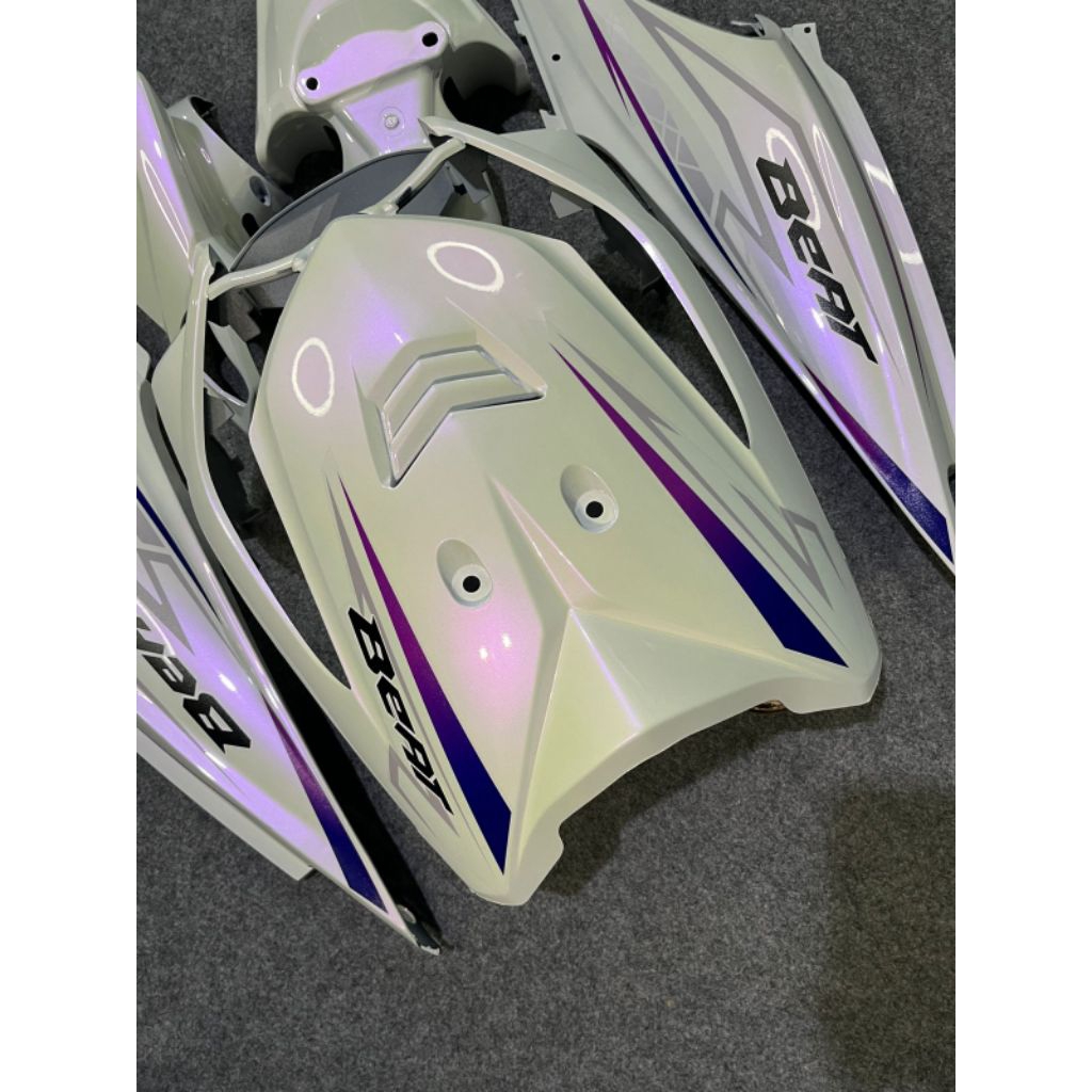 cover ful body halus Honda beat karbu 2008-2012 putih lem ungu plus striping transparan - fullset body Beat karbu putih