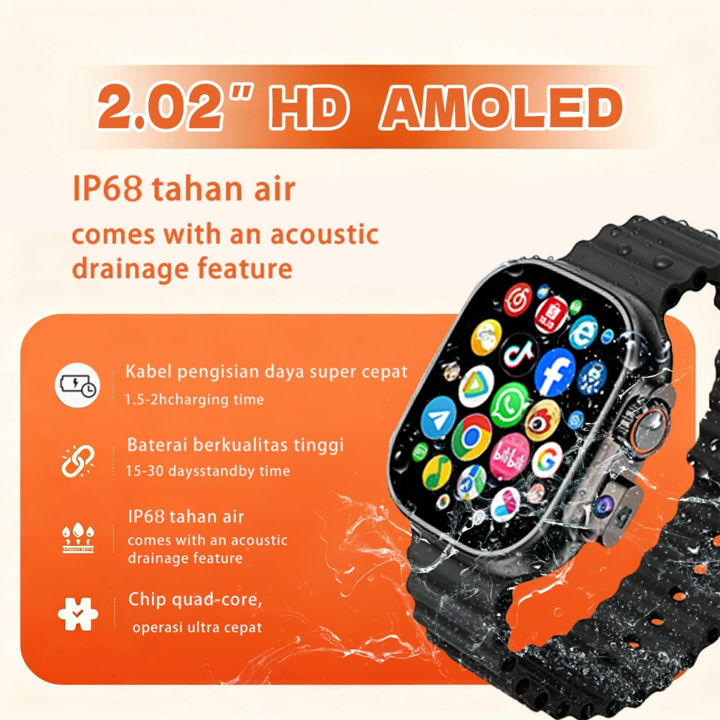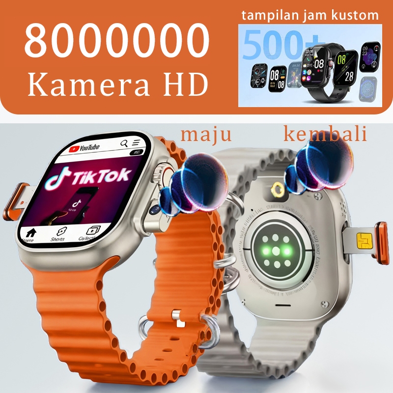 jam tangan Smartwatch S8 MAX+ SIM CARD Smartwatch wanita & pria | AMOLED | GPS 4G|5G | IP68 tahan air | NFC WIFI Kamera