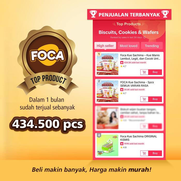 10 Caramel, 10 Chocolate, 10 Egg Milk, 10 Original Kismis, 10 Strawberry, 5 Rasa @ 2 Pcs