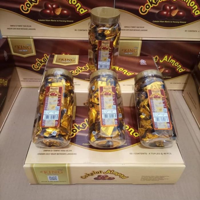 Almond coklat almond d'KING 1 pak 4 toples makanan jajan lebaran Hadiah Idul Fitri - Kotak Hadiah Cokelat