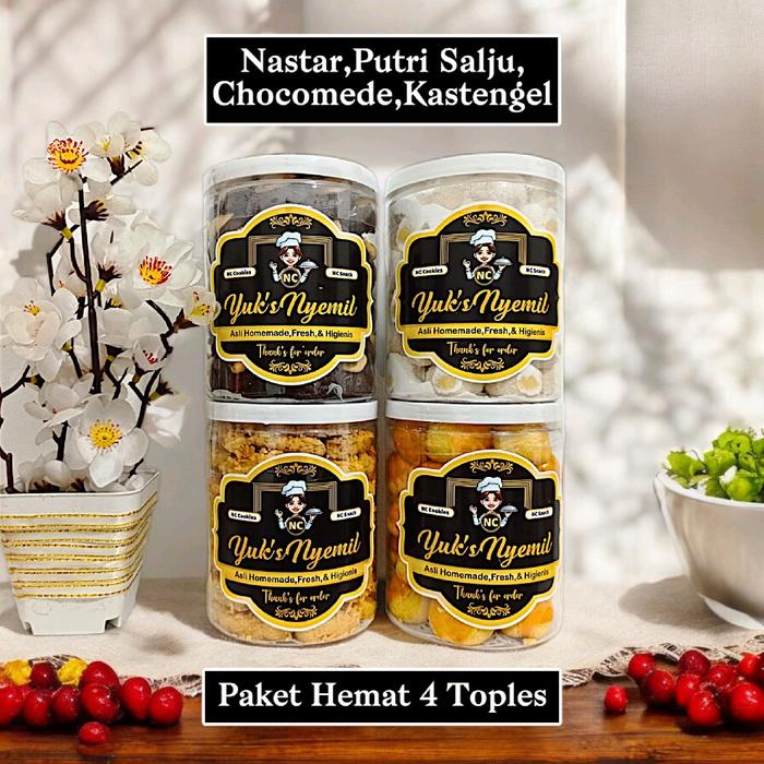 Paket Cookies Hemat Dapat 4 Toples Kue Kering NastarPutri SaljuChocomede Kastengel