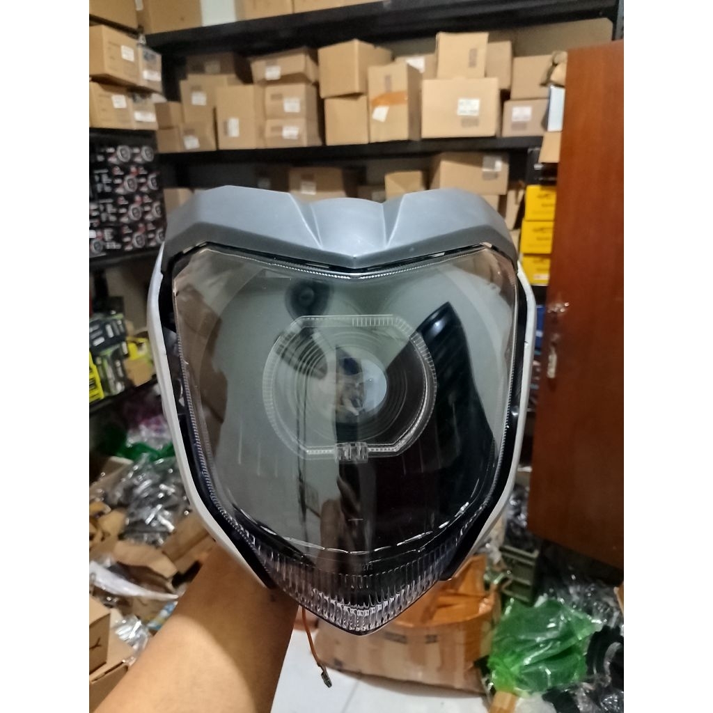 Reflektor Kedok Batok Kepala Lampu Depan Byson Karbu Plus Biled 4 Mata Sudah Plus Kupingan Lampu Set Visor