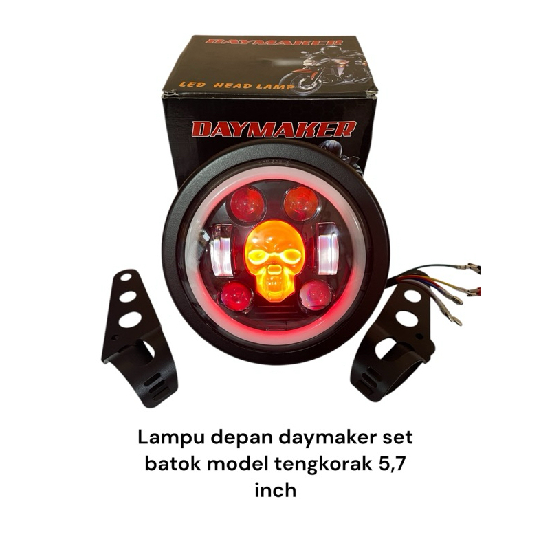 Daymaker Lampu Depan Model Tengkorak Set Batok Ukuran 5,7 inch Universal Motor Custom