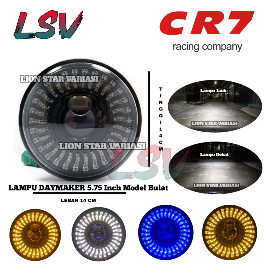 Headlamp Daymaker Bulat Skull Eyes Lampu Depan Daymaker LED Bulat 5.75 Inch Plus Senja Universal Semua Motor Mobil Ukura