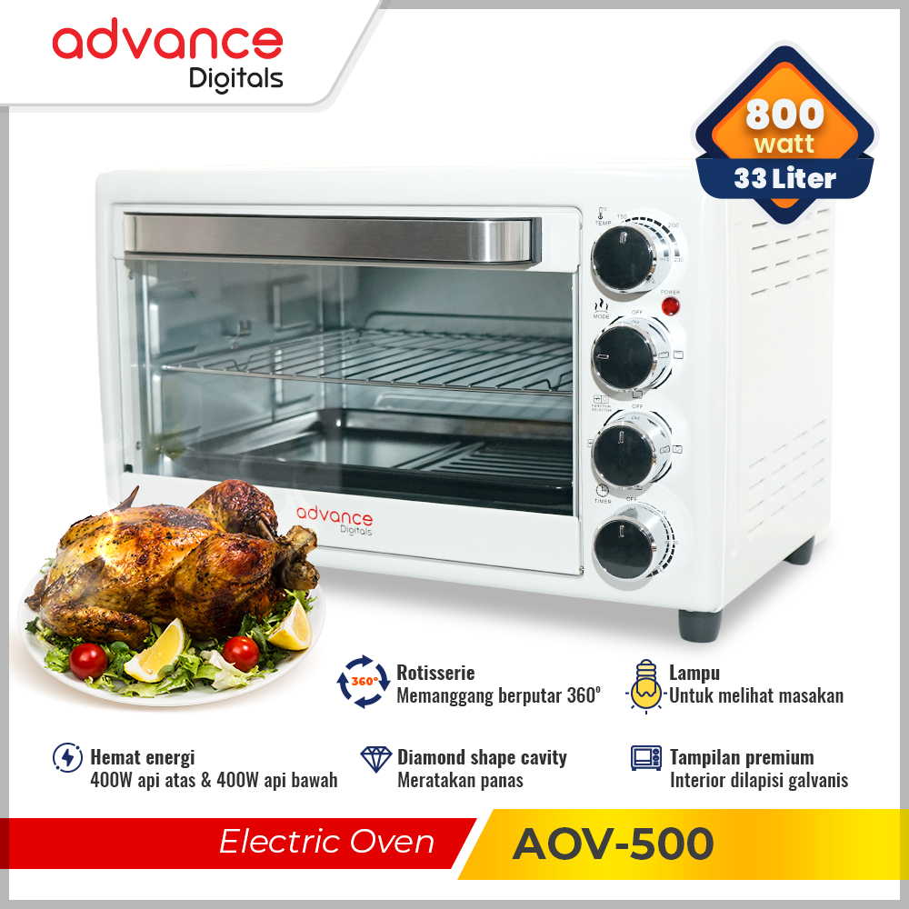 Advance AOV-500 Oven Listrik 33L Besar Barbekyu Kue Lampu Internal Electric Oven