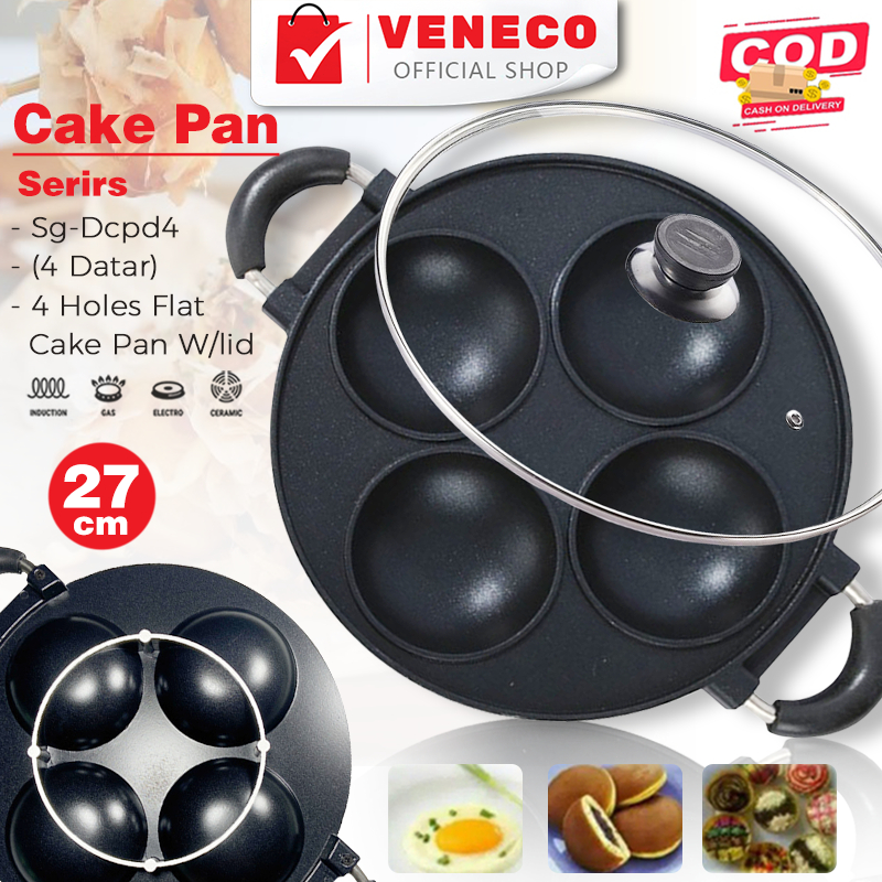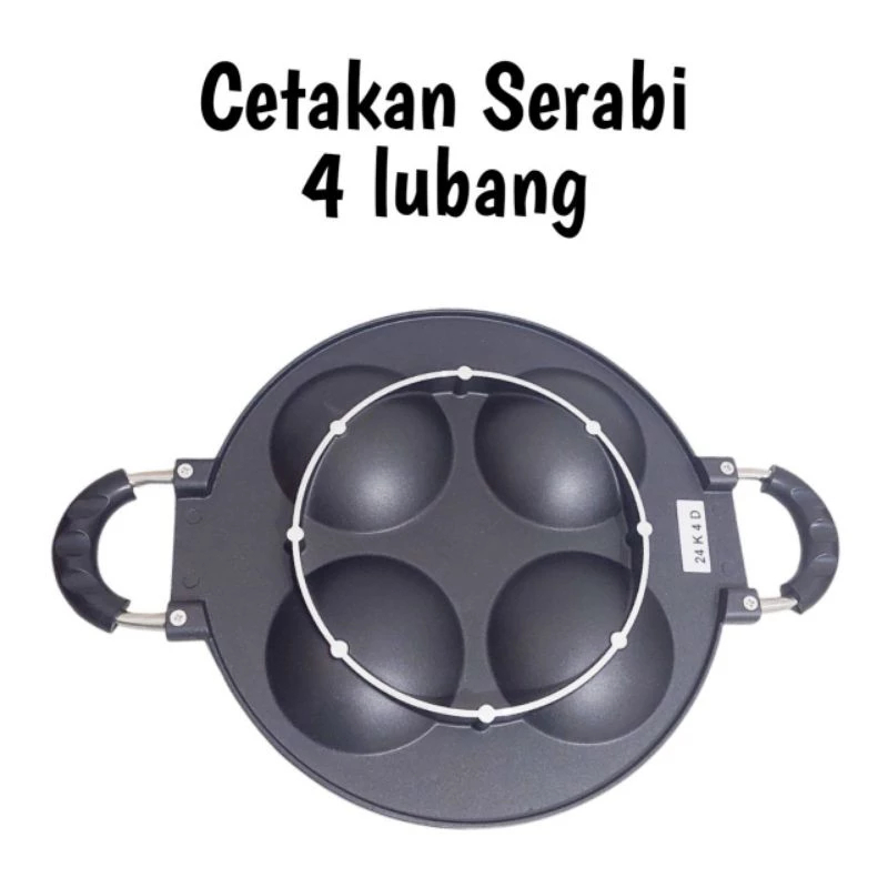 Cake Pan Cetakan Kue Serabi Apem Kue Lumpur 4 Lubang Anti Lengket Dengan Tutup Kaca