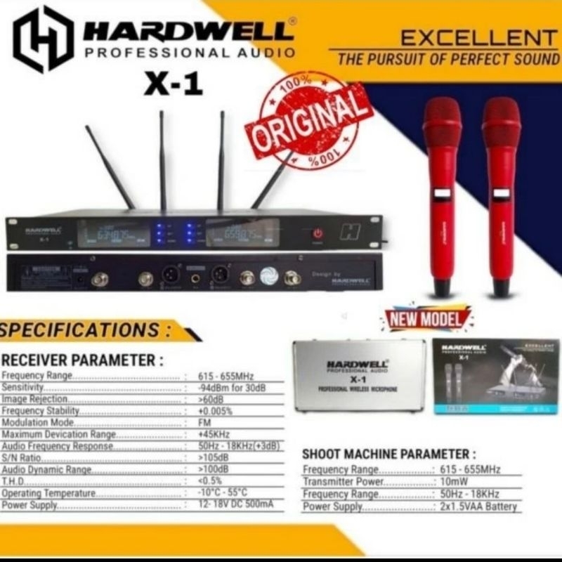 Mic Wireless Hardwell X1 / X-1 ORI Dual Mic Handheld Free Koper
