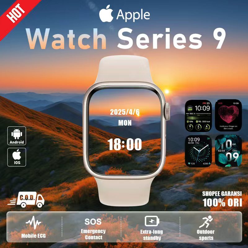 Apple Watch Series 9 41mm 45mm/ iWatch Series 9 Jam Olahraga Pintar Bluetooth IP68 Tahan Air Jam Tangan Pintar iPhone Pe