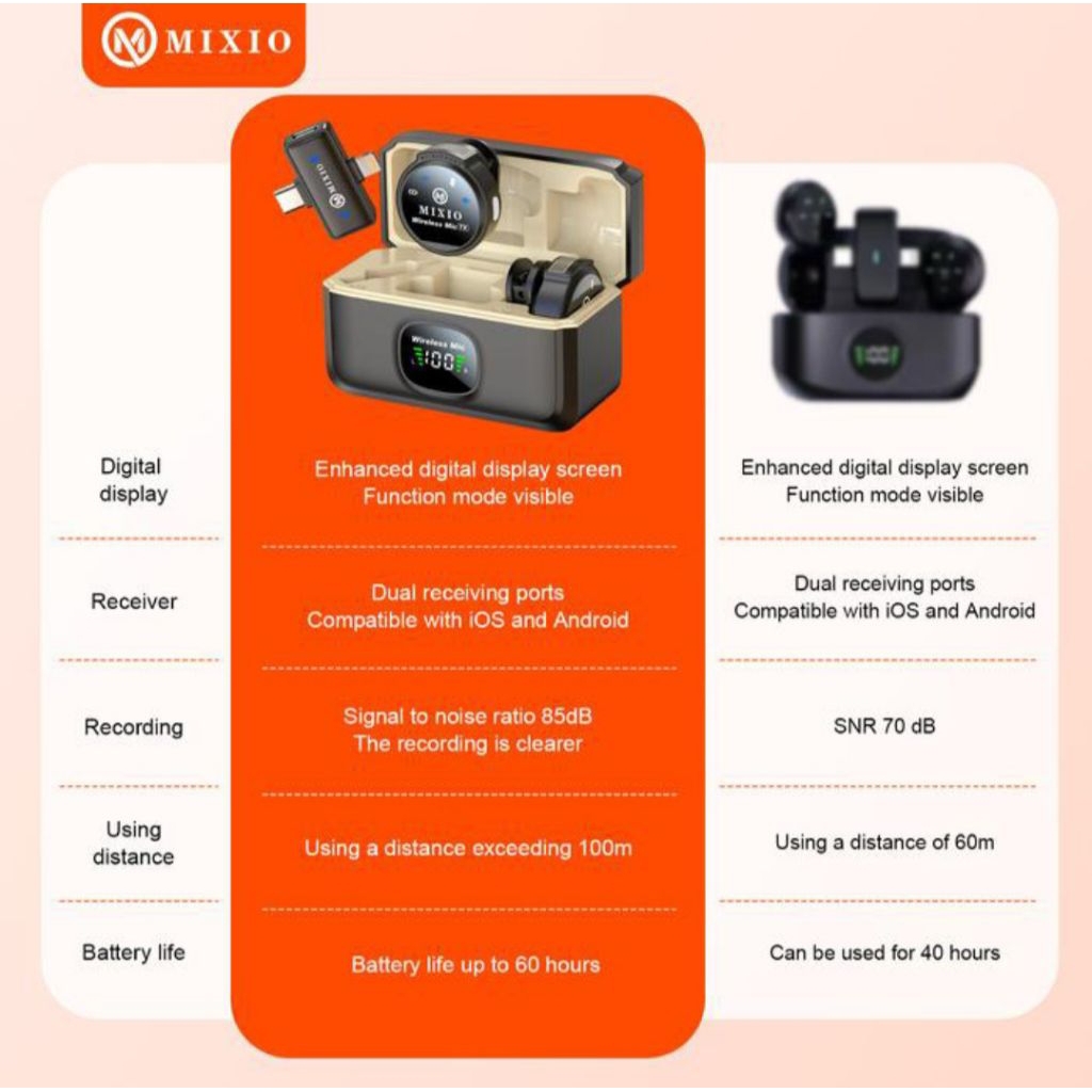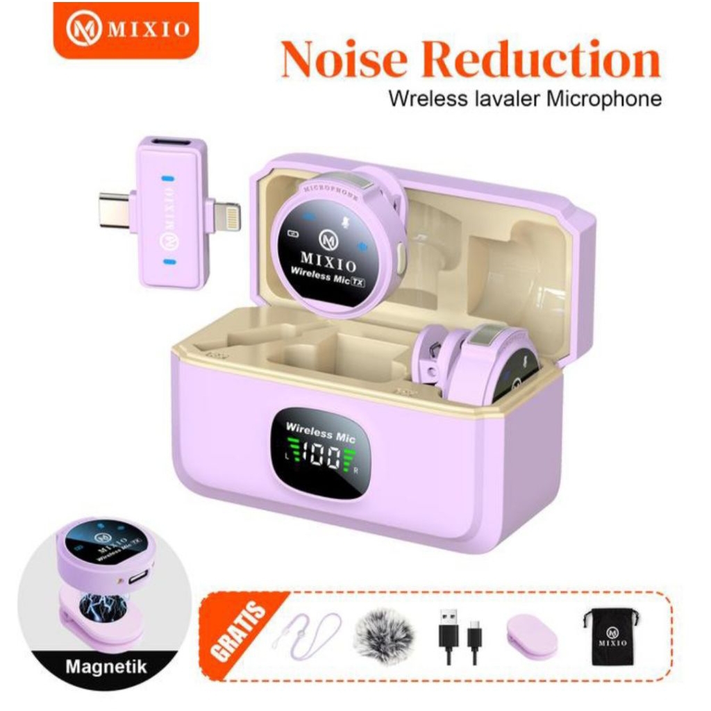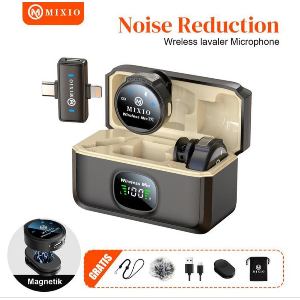 MIXIO T13 Magnetic Wireless Microphone 2-In-1 Clip On Mic Magnetic Mikrofon HP Plug & Play Dual Lavalier Microphone wit