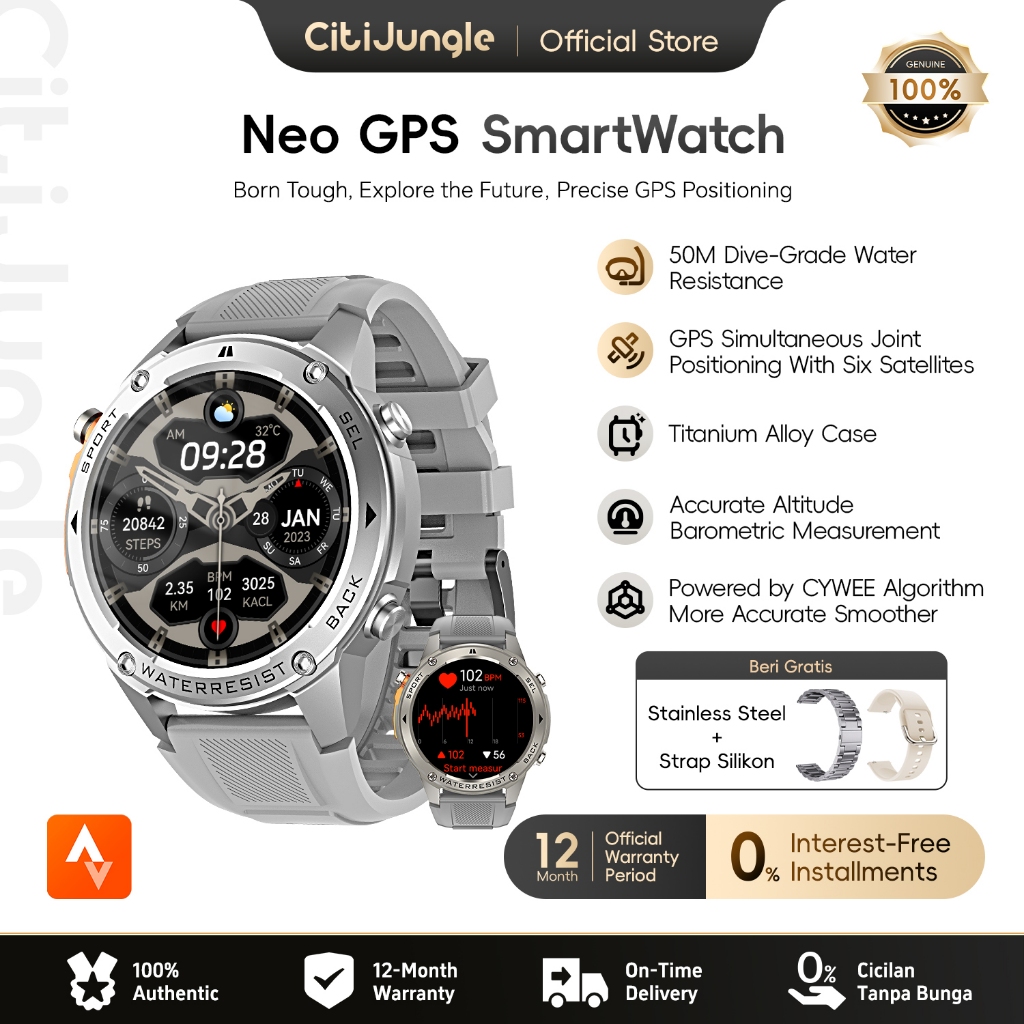 Citijungle NeoGPS DM56 Smartwatch GPS Frekuensi Ganda Layar Sentuh AMOLED 1.43" Tahan Air 5ATM Kompas Bluetooth Panggila