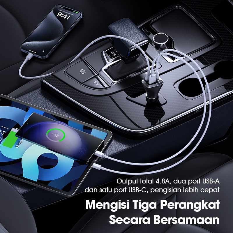 [Star] ACOME Car Charger ACC07 Dual Port USB-A USB-C 4.8A QC3.0 Colokan Mobil Support Fast Charging Device Black Origina
