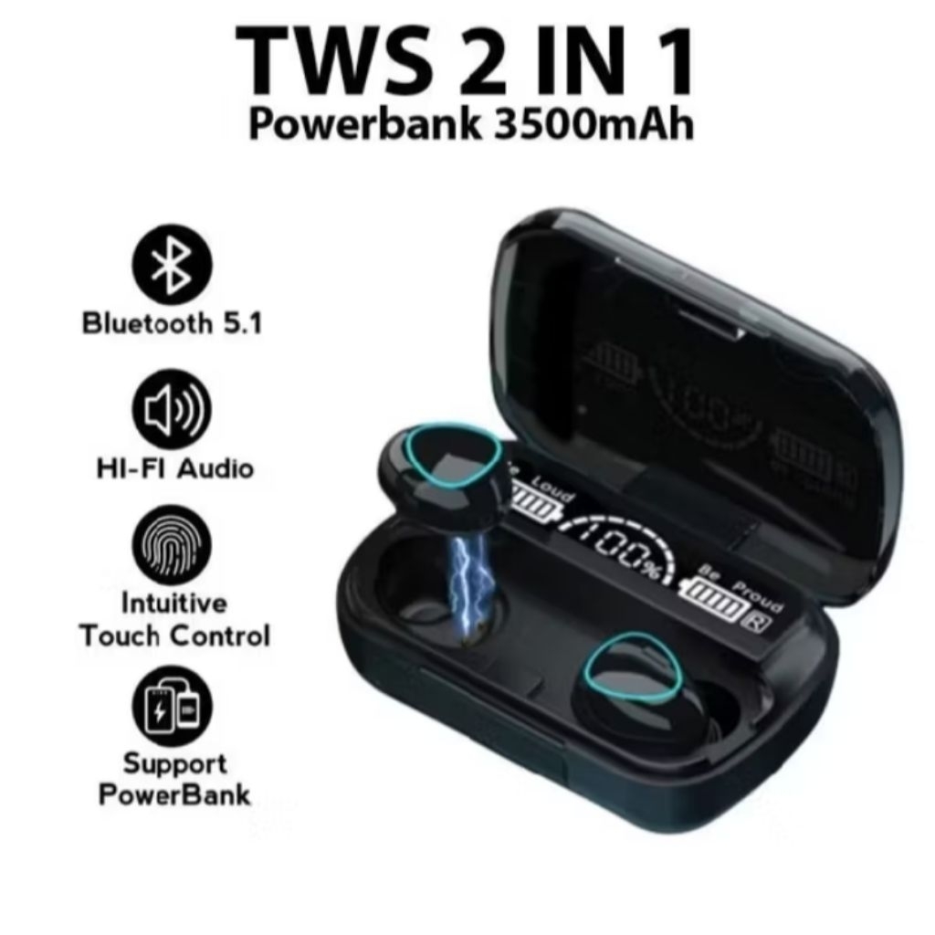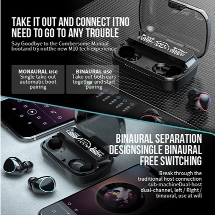 [Star] M10 Wireless HEADSET TWS Bluetooth in HANDSFREE Earphone BLUETOOTH FULL BASS STEREO WITH POWER BANK with HiFi LED