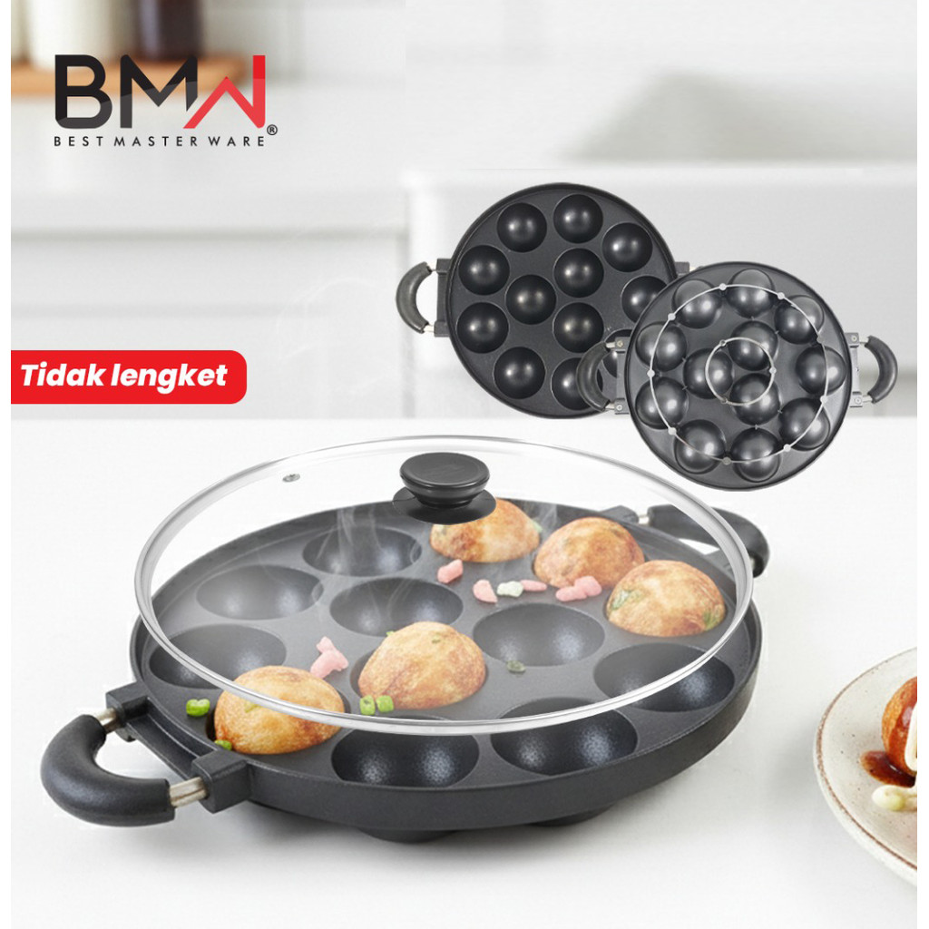 RIRAST - CETAKAN KUE TAKOYAKI 12 LUBANG ANTI LENGKET + TUTUP KACA BMW BEST MASTER WARE