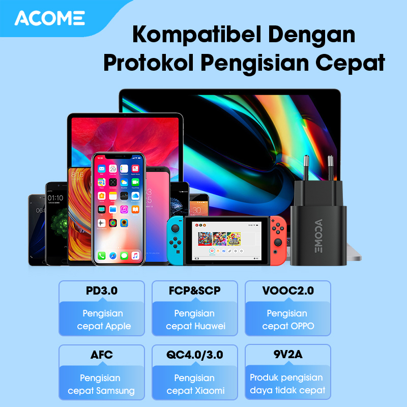 [Star] ACOME Bundling Hemat Charger 20W PD USB-C (AC07) + Kabel Data 100cm Type-C / Type-C to Lighting Fast Charging Gar
