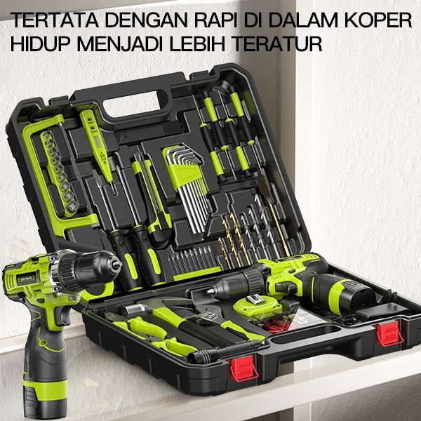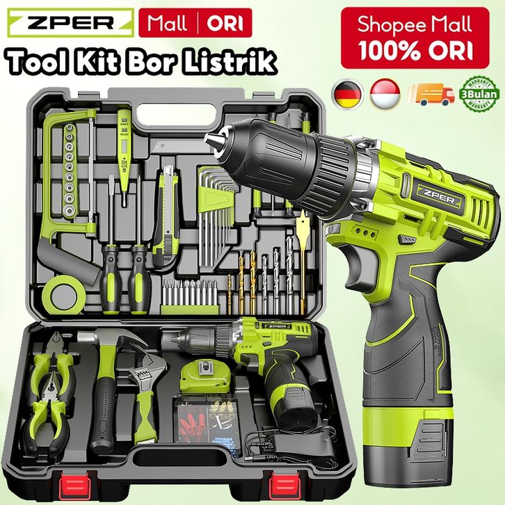 Bor Listrik Satu Set Alat Perkakas Tang Palu Obeng Kunci Pas ZPER