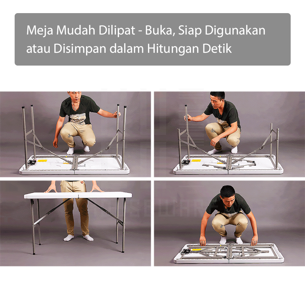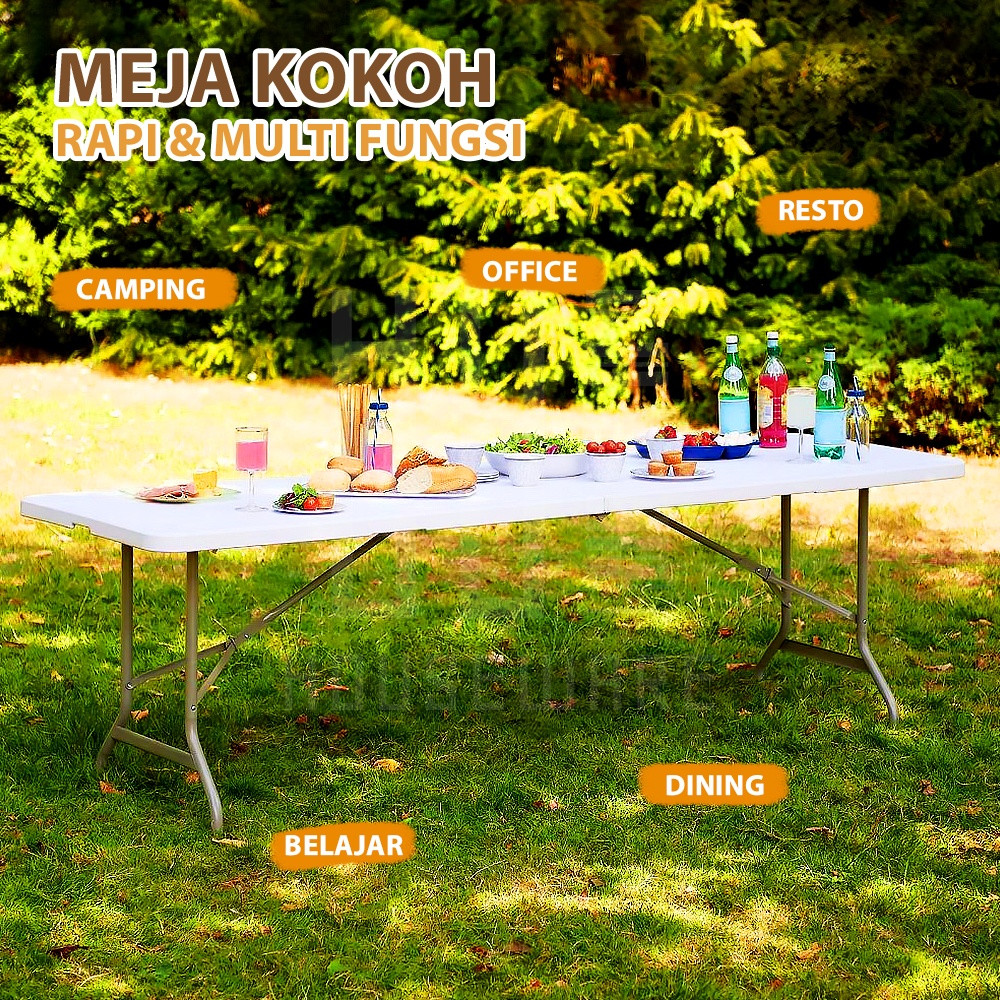 HUGO Meja Lipat Plastik Rangka Besi Kokoh Meja Lipat Jualan Outdoor Serbaguna Meja Makan Besar Tahan Beban 500kg