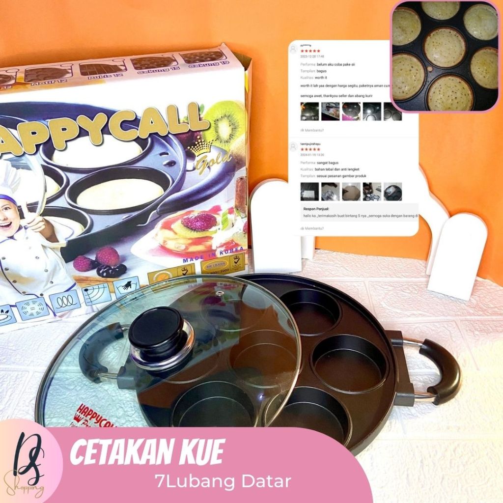 Cetakan Martabak Mini 7 Lubang Datar Happy Call Premium / Cetakan Kue Anti Lengket