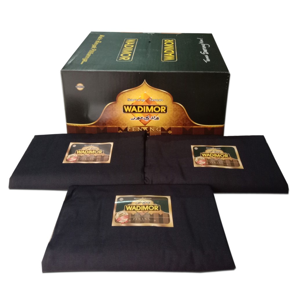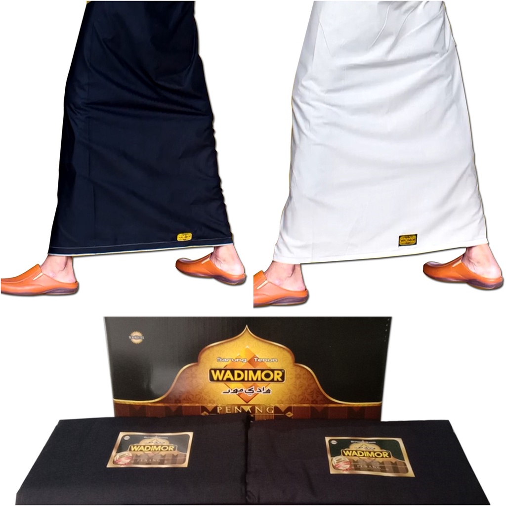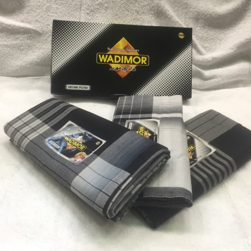 Sarung WADIMOR BLACK & WHITE Kain Tenun Polos Tumpal Garis Hitam Putih Sholat Shalat Dewasa Pria Laki Pesantren Santri Muslim