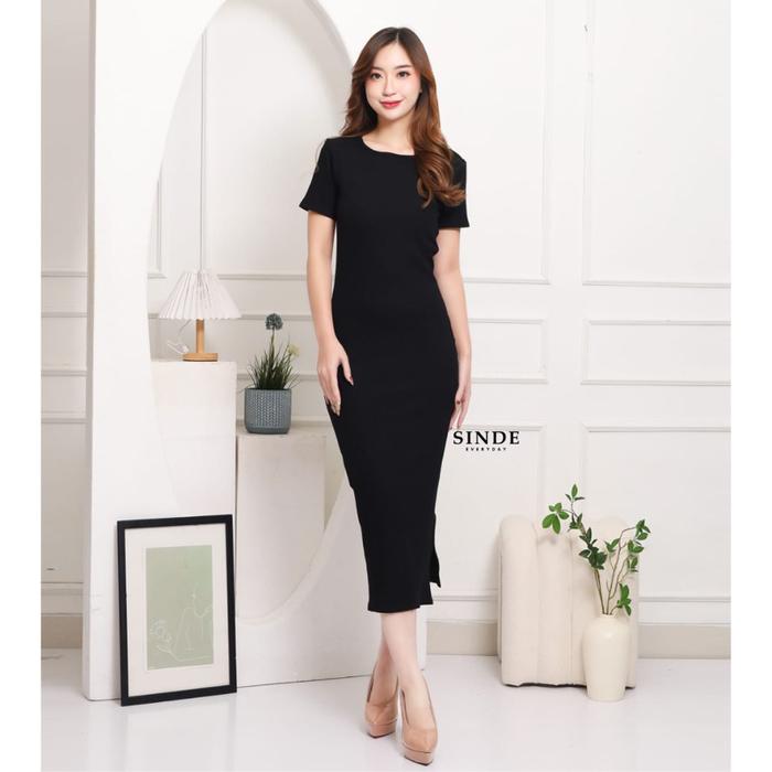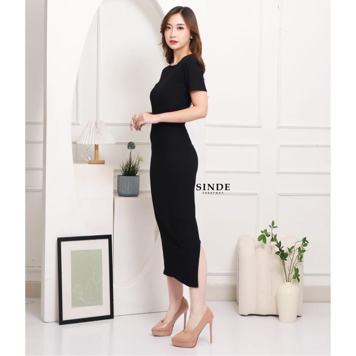 Sinde Laura Dress Knit Midi Premium Wanita Press Slim Fit Body Gaun Simpel Elegan Korean Style Panjang Mini Simple Casua