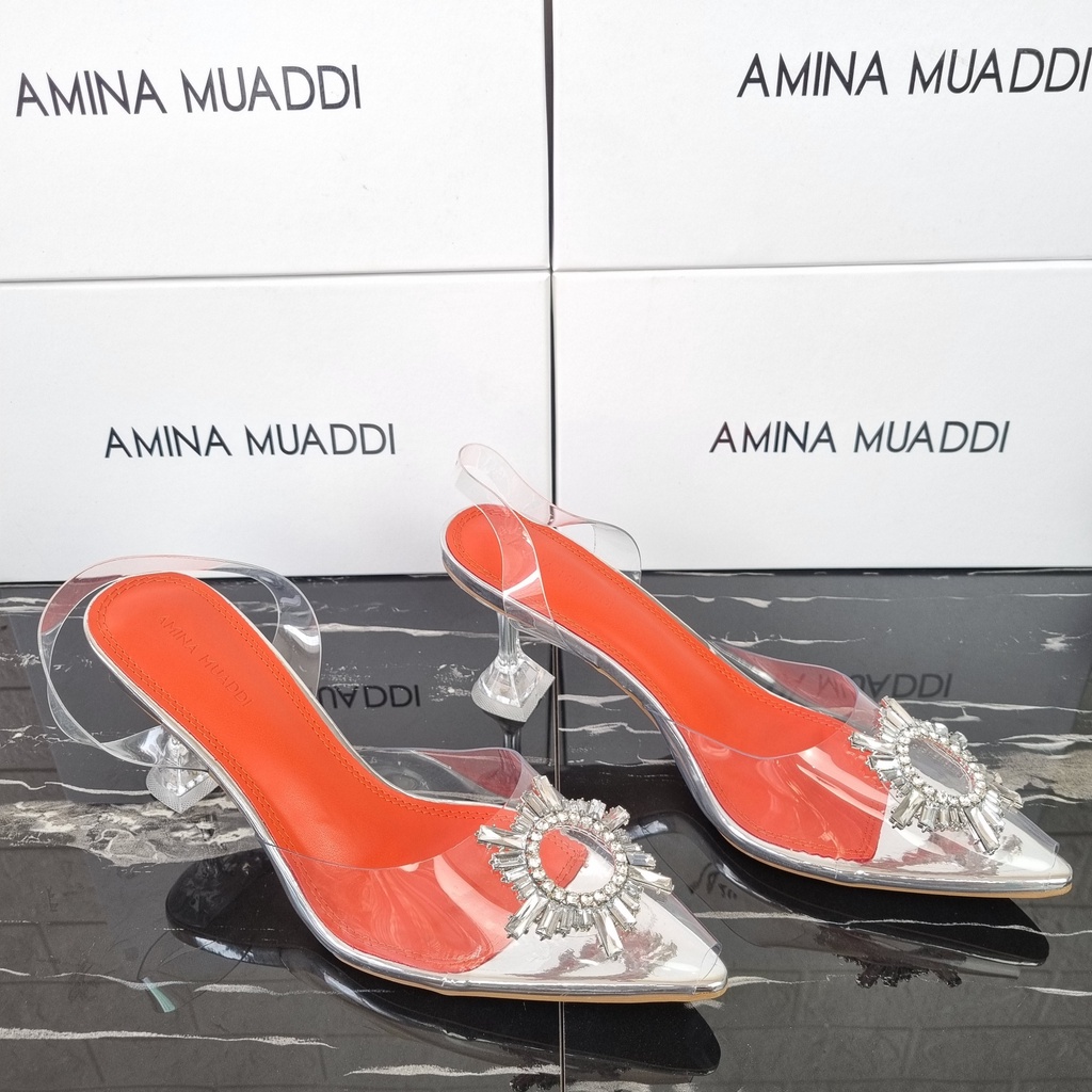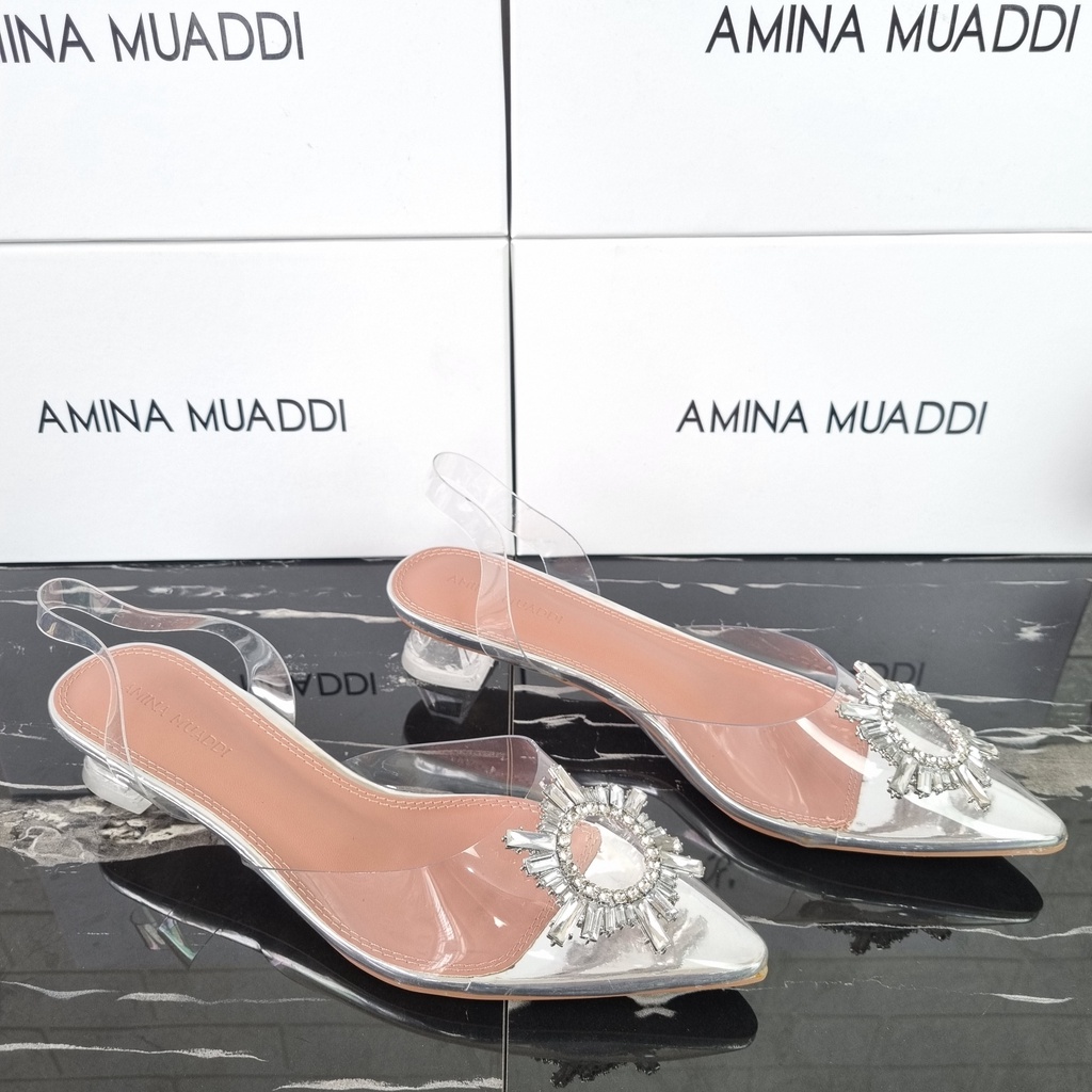 Sepatu Amina Muaddi Begum Crystal Glass Sling Heels Transparent Pvs - Sam001