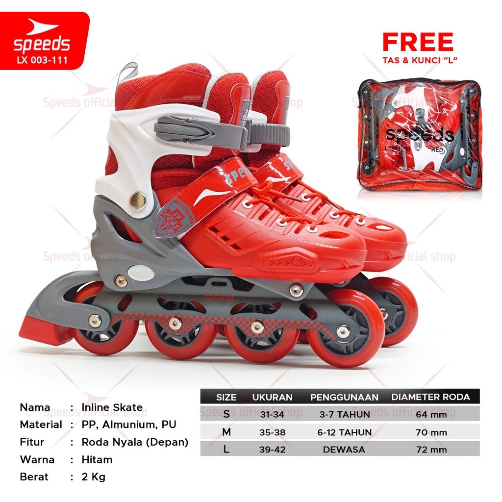 SPEEDS Sepatu Roda Anak Dewasa Remaja Roller Skate Park Inline Roda Full Karet PU Nyala 1 003-111