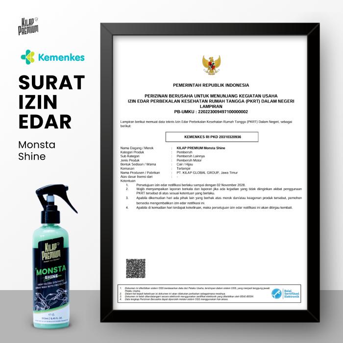 Monsta Shine | Kilap Premium - Pengkilap Body Motor Mobil Helm Glossy, Sealant Semi Coating Wax Paint, Pengkilap Cat Mot
