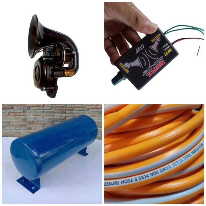 PAKET KLAKSON TRUK VOLVO SCANIA MODEL KEONG CICADA ORI TUTUP BESI 12/24VOLT DENGAN MODUL PUTUS-PUTUS DAN TABUNG - CAR