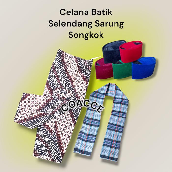 Setelan Celana Batik Betawi Sadariah Dapat Selendang Sarung Dan Songkok - Paket Cokelat, 2