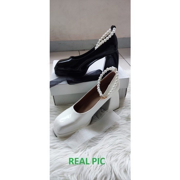 Sepatu Wanita Heels Hak 331 Tali Mutiara Korea Style Mary Jane Pearl Fashion Elegan Cantik Pesta Kerja Santai Keren Tren