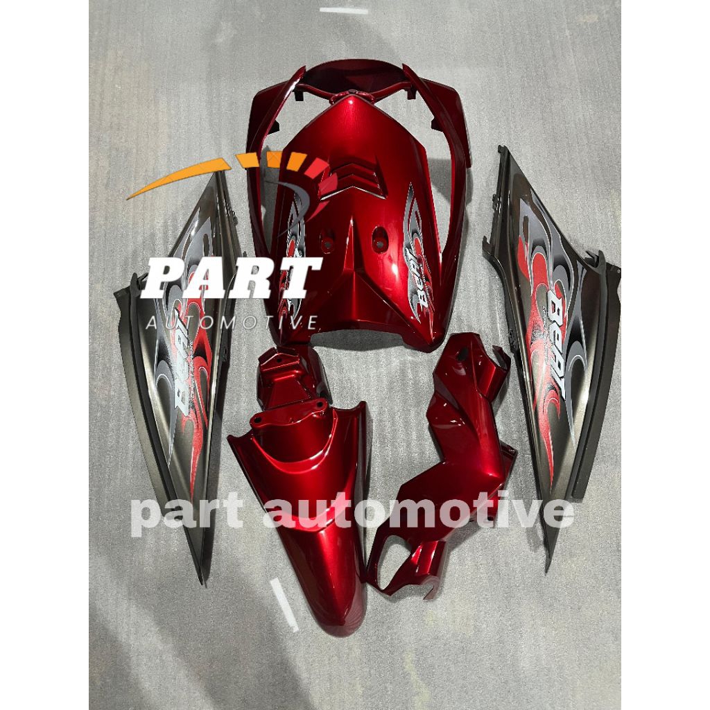 cover body full halus beat karbu 2008-2012 merah candy mix grey plus striping transparan api costum