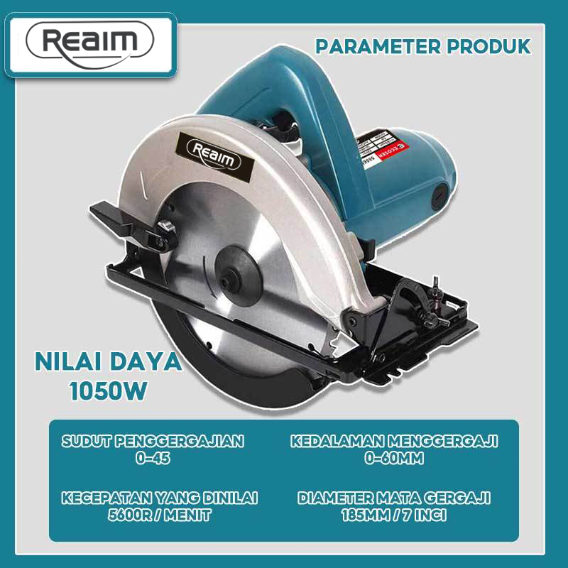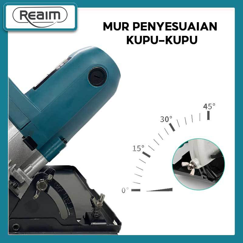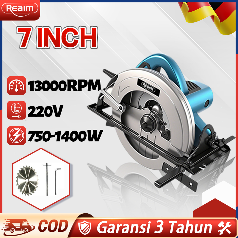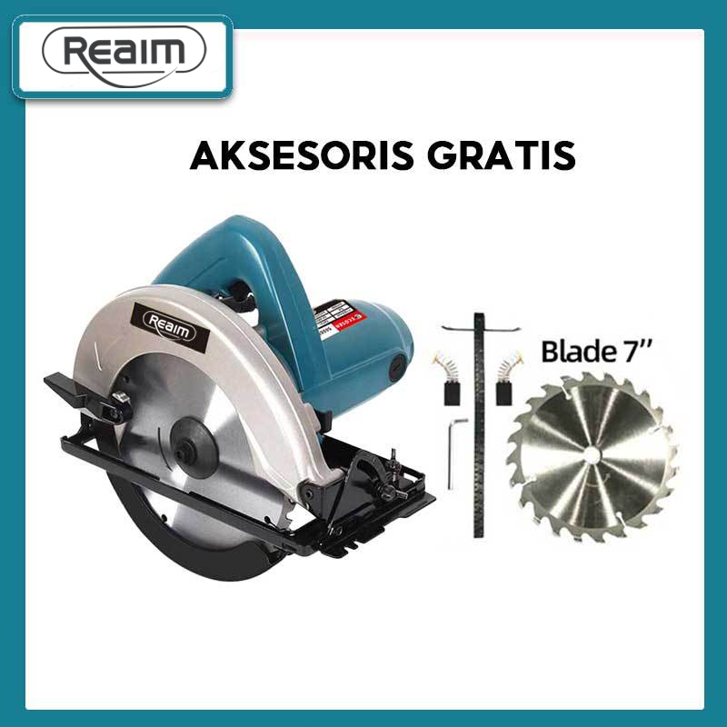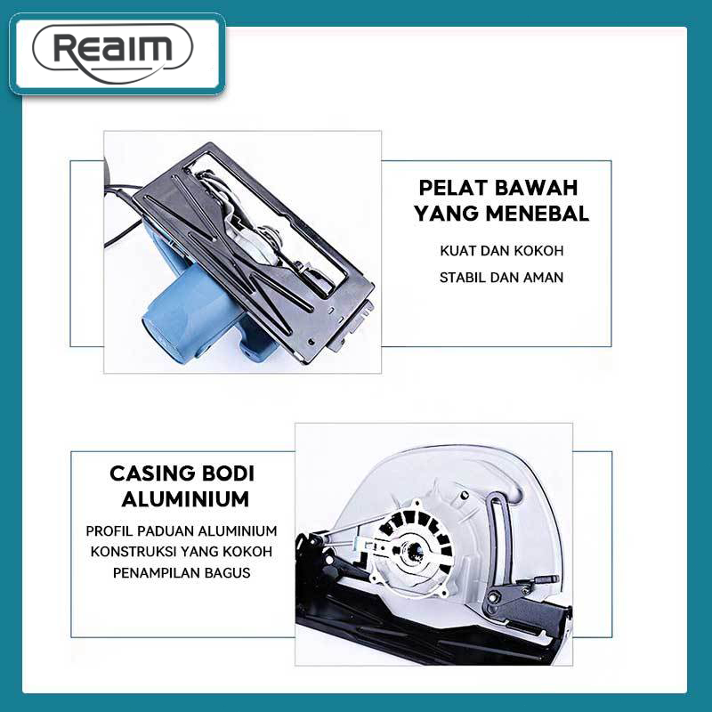 REAIM Gergaji kayu Gergaji Besi Circular Saw 7 Inch 1400W Mesin Potong Kayu Mesin Serkel Kayu