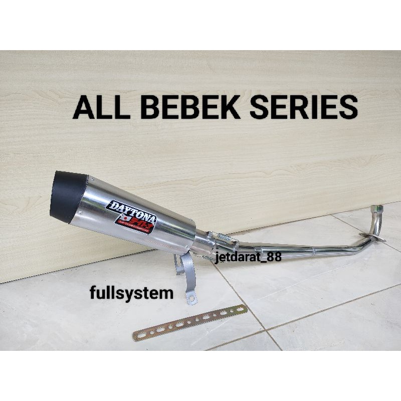 knalpot racing DAYTONA untuk motor BEBEK ALL VARIAN/TYPE. jupiter z,robot,Z1. supra x 125. karisma. supra fit. vega R. blade. revo fit. smash. shogun. astrea grand prima legenda.crypton.bebek C-70
