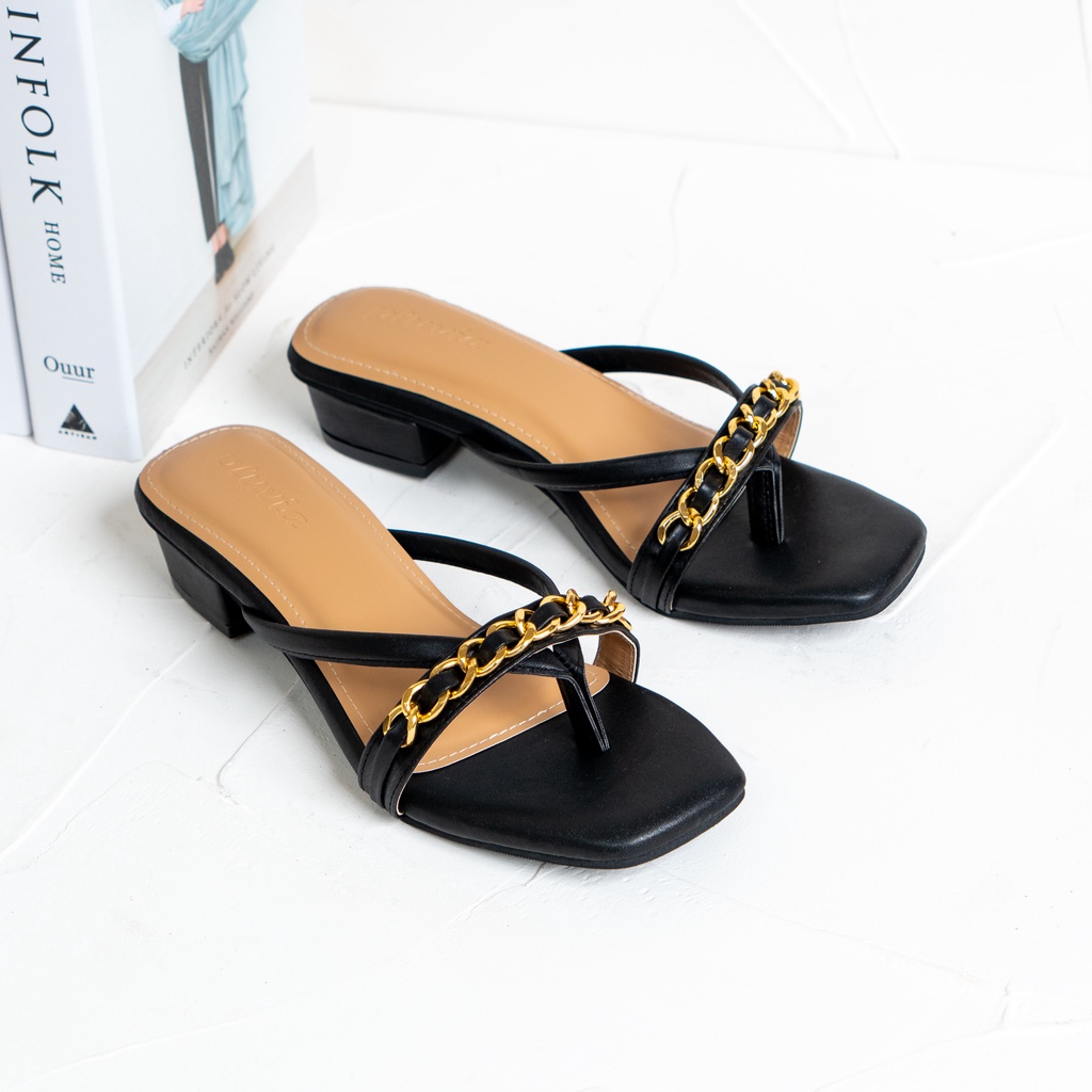 Pluvia Hilda Sandal Heels Wanita Hak Tahu 3 Cm Akesoris Rantai