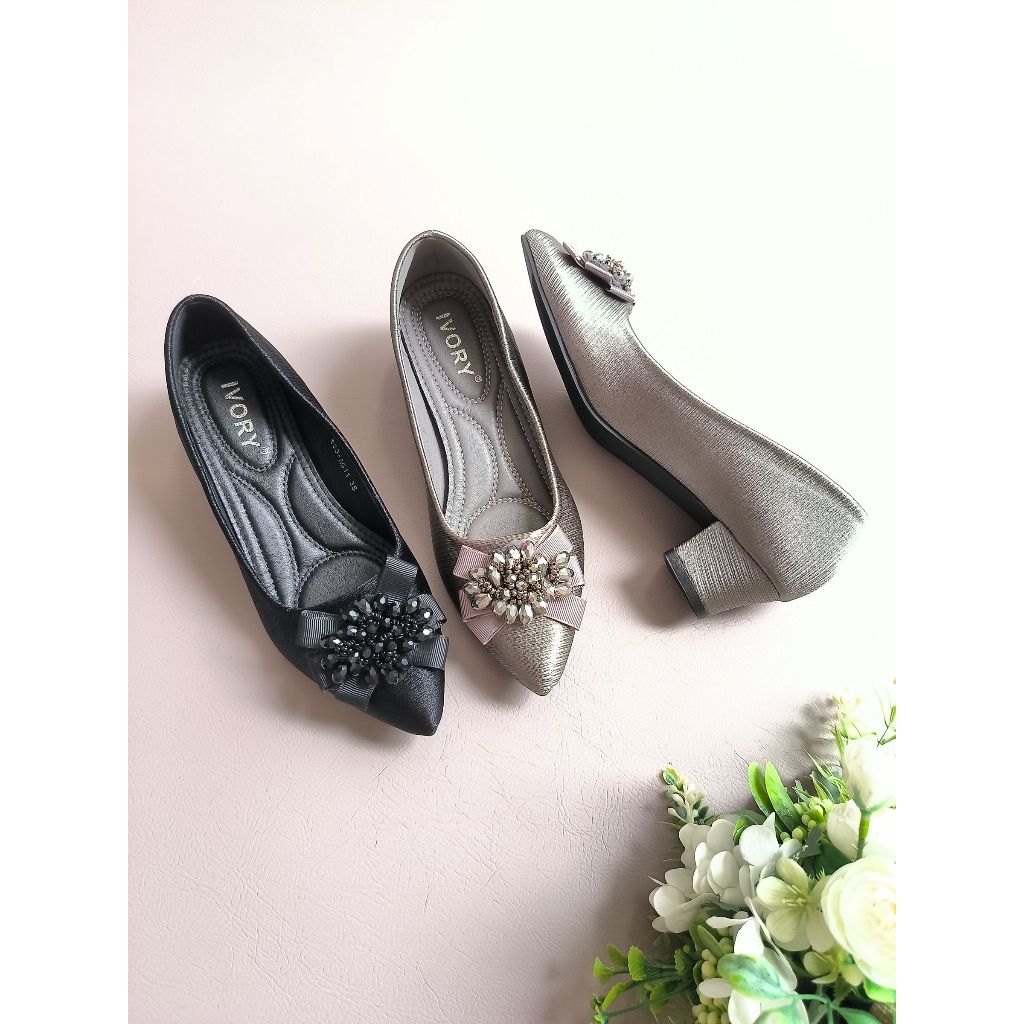 Ivory Sepatu Heels Wanita Kerja Hak Tahu Ag11 Hitam