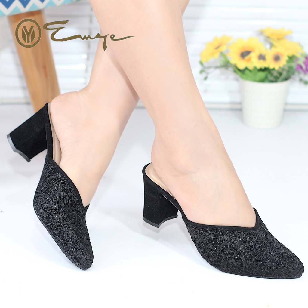 Emye - Sepatu Pengantin Wanita 36-41 Wedding Brukat 7Cm Sandal Pesta Kondangan