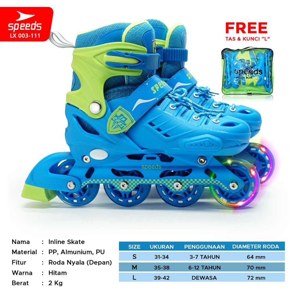 SPEEDS Sepatu Roda Anak Power Inline Skate/Bajaj Roda Nyala Depan Roller Skate 003-111